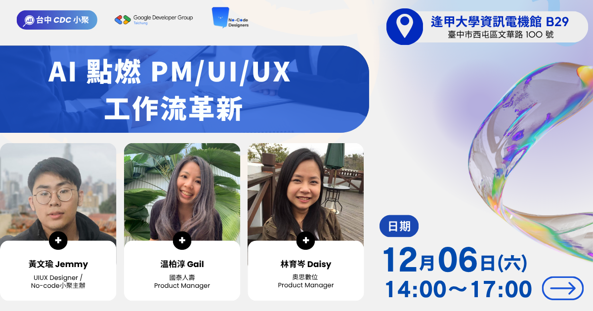 【國泰台中 CDC x 台中 GDG x No-Code 小聚|三社群聯手!】